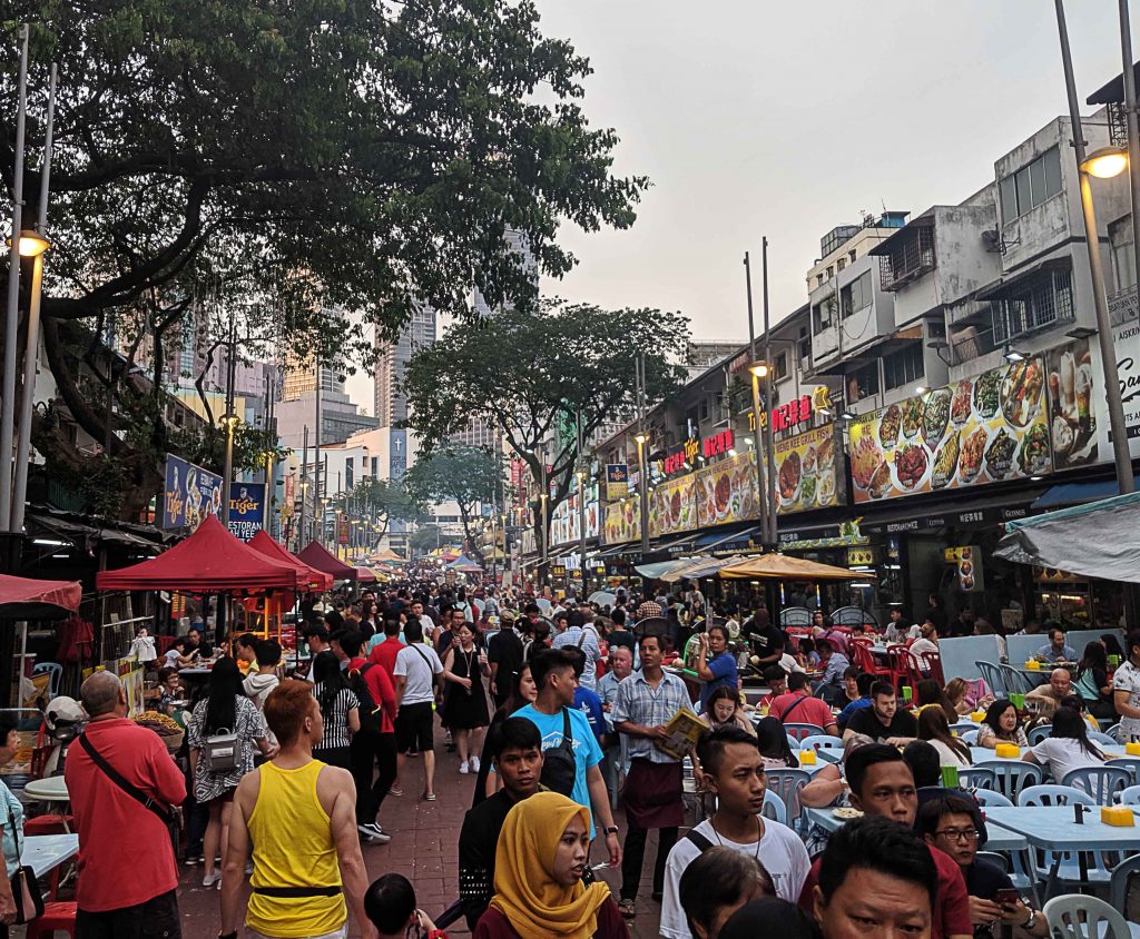 Genauso vielfältig wie die Menschen in KL ist auch die Küche. Alle drei großen Gruppen (Chinesen, Inder, Malai) finden sich sowohl in Stadtteilen wie auch in der Esskultur wieder. Wir haben versucht unseren kulinarischen Horizont zu erweitern und von allen Einflüssen etwas mitzunehmen. Entgegen kam uns dabei, dass unsere Unterkunft in KL in dem Stadtteil Bukit Bintang lag und sich unweit davon die bekannte Streetfood-Meile Jalan Alor befand. Dort gibt es so ziemlich alles was das Herz begehrt – und das zu günstigen Preisen (ca. 5€ pro Person/Gericht inkl. Getränk). Neben den bereits erwähnten „heimischen“ Gerichten, gibt es dort auch thailändisches, vietnamesisches und taiwanesisches Essen. Auch für Snacks zwischendurch, wie frisches Obst, frittierte Teigteilchen oder kleine Reisküchlein (Putu Piring) ist die Straße zu empfehlen. Man kann sich also durch alles durchprobieren!
