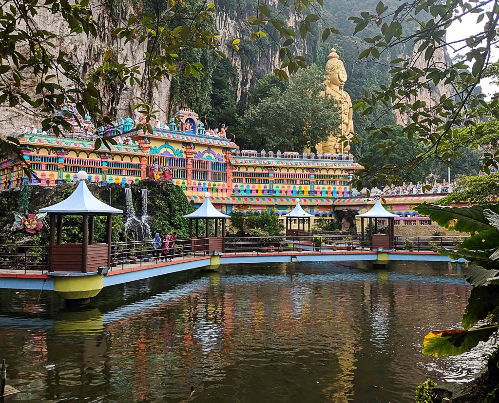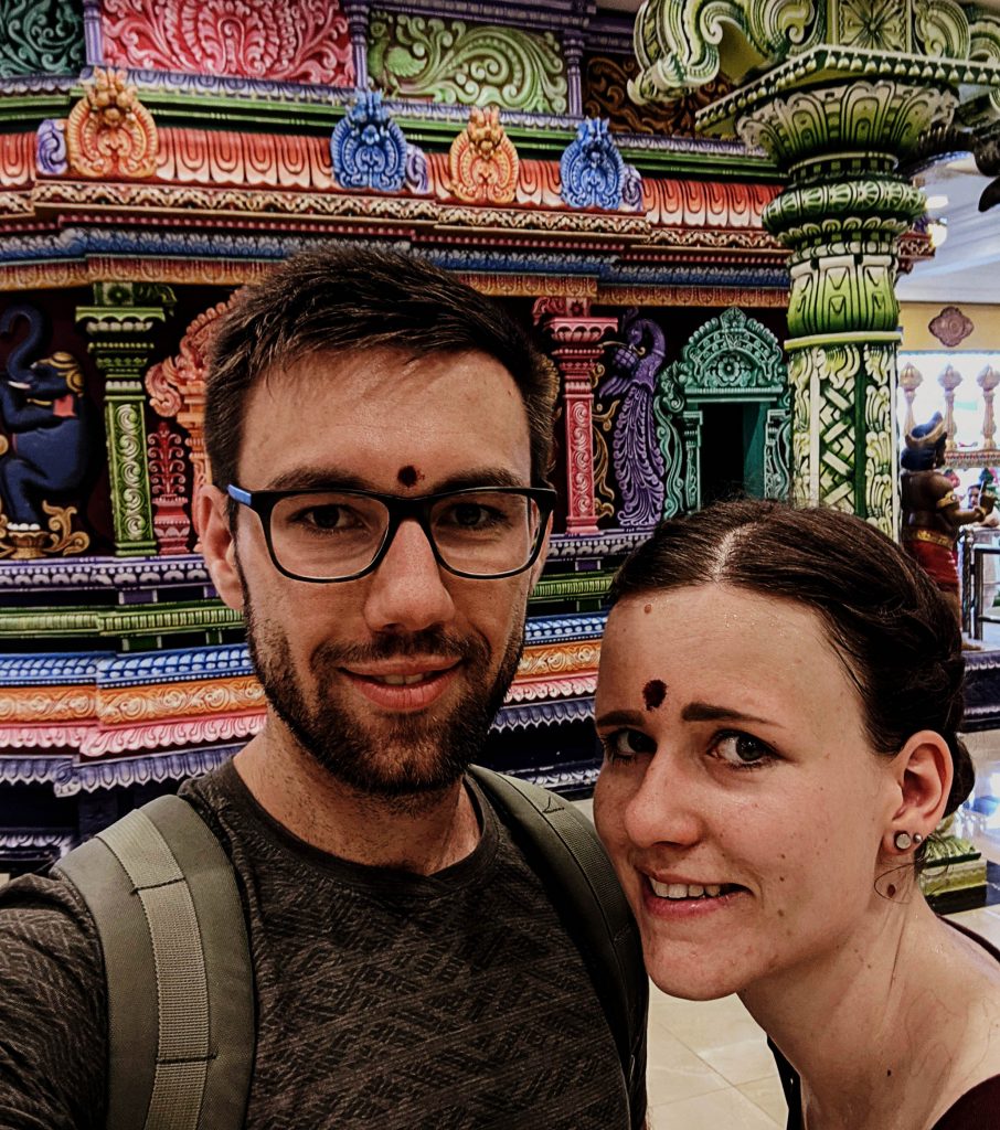Im Kontrast dazu haben wir an den Batu Caves (Höhlen mit mehreren Hindu-Tempeln) bleibende Eindrücke vom Hinduismus sammeln können – mit dabei unsere neuen Freunde Anka und Florian. Während einer laufenden Hochzeit haben wir einen der Tempel besichtigt und wurden sogar mit in die Gebet einbezogen, sodass wir zufrieden und mit einem roten Punkt auf der Stirn den Tempel verlassen haben 🙂