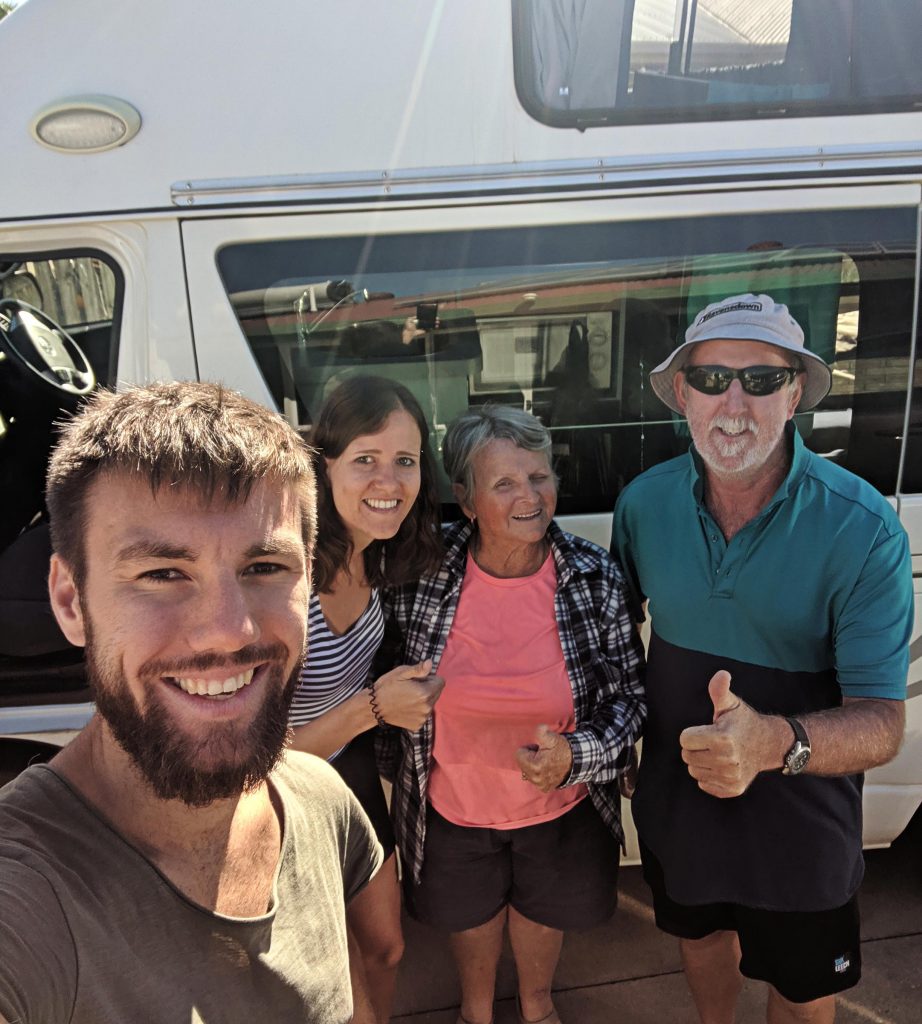 Ebenfalls auf diesem Rastplatz lernten wir ein französisches Pärchen aus Antibes (genau der Stadt an der Cote d’Azur, in der Tamara während ihrer Schulzeit schon einmal eine Sprachreise unternommen hatte) kennen. Sie erzählten uns, dass sie schon seit acht Monaten durch Australien reisen würden um ihr Englisch zu verbessern. Dabei schliefen sie nur in einem Dachzelt auf ihrem All-Rad-Wagen. Nach einer langen Unterhaltung trennten sich unsere Wege, wir waren allerdings in dieselbe Richtung unterwegs und wir hofften, sie auf diesem Weg noch einmal wiederzusehen.