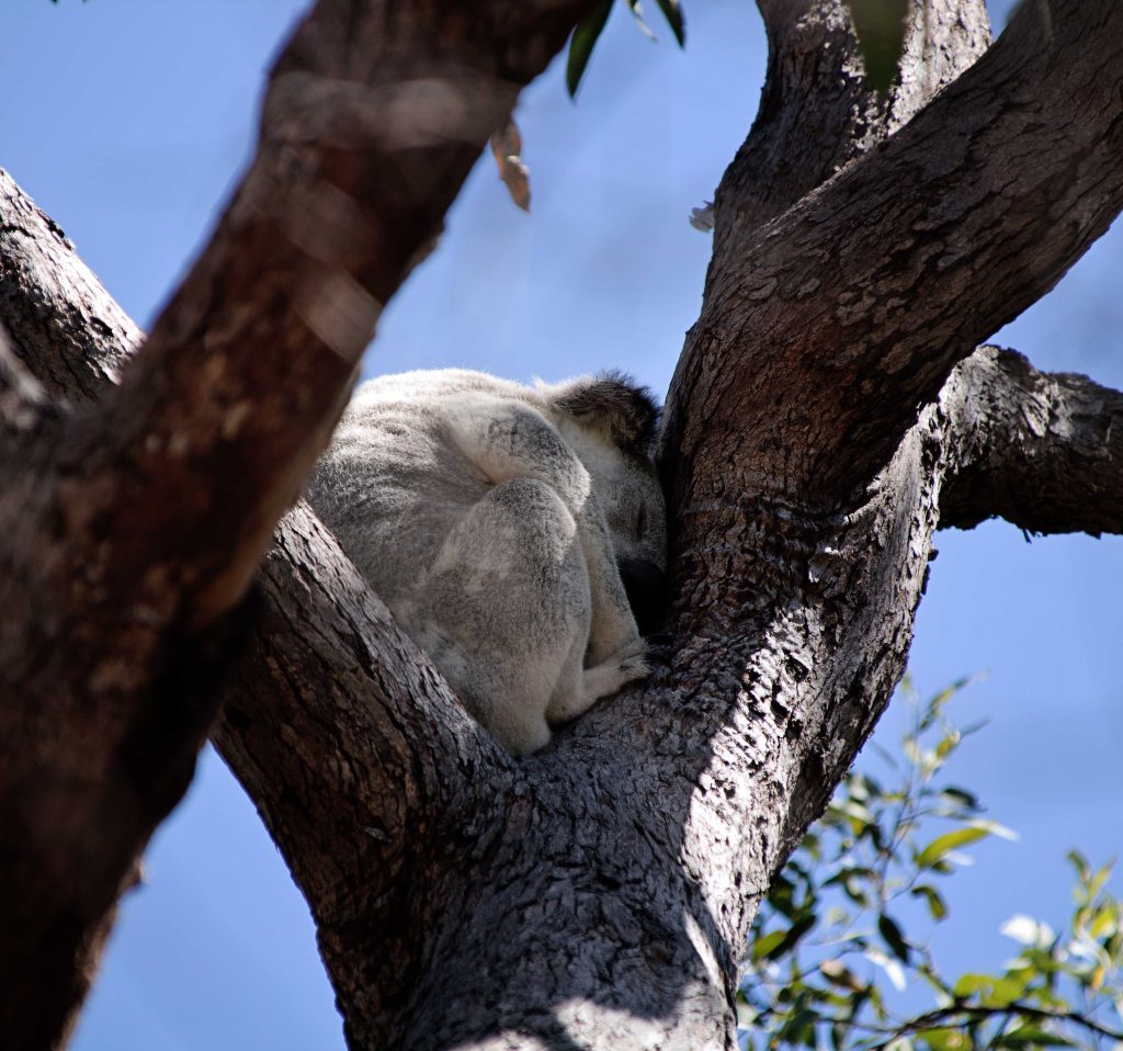 Am folgenden Tag setzten wir mit der Fähre über nach Magnetic Island – einer kleinen Insel direkt vor Townsville. Wir schnürten die Wanderschuhe und machten uns auf zu einer circa 8 km langen Wanderung über die Insel. Während dieser Wanderung ist es uns gelungen, an einem belebten Spot Koalas zu sichten. Witzige Geschöpfe. Wenn sie nicht schlafen, essen sie. Während wir dieses für uns unbekannte Tier bewunderten, bewegte es sich kaum. Nur kurz den Kopf heben. Weiter schlafen. Leider nutzten diese „Entspanntheit“ auch social media-verrückte Frauen aus, die einen Koala natürlich für ein Foto anfassen mussten. Ich fragte mich, wie sie sich wohl fühlen würden, wenn ich sie einfach mal für ein Foto anfassen würde?!