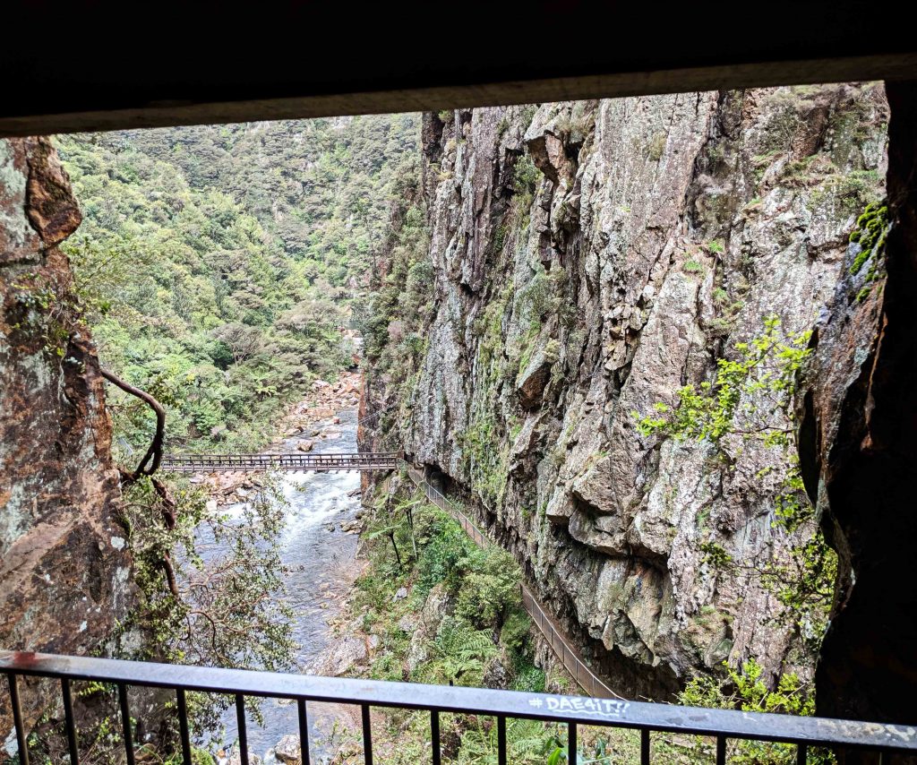 Nach etwas mehr Zeit als eingeplant ließen wir den Stau in Auckland und damit auch den nördlichen Teil der Nordinsel hinter uns und erreichten bei Dunkelheit unser Nachtquartier in Kaiaua. Von dort aus ging es am nächsten Morgen weiter nach Thames. Da den ganzen Tag Regen angesagt war – und zwar so ein Regen, dass selbst Straßen gesperrt waren – gingen wir es ruhig an. Wir informierten uns in der Touristen-Information über mögliche Aktivitäten für die nächsten Tage, machten den kurzen Window Walk durch ehemalige Goldminen in der Karangahake Gorge und entspannten in einem Café.