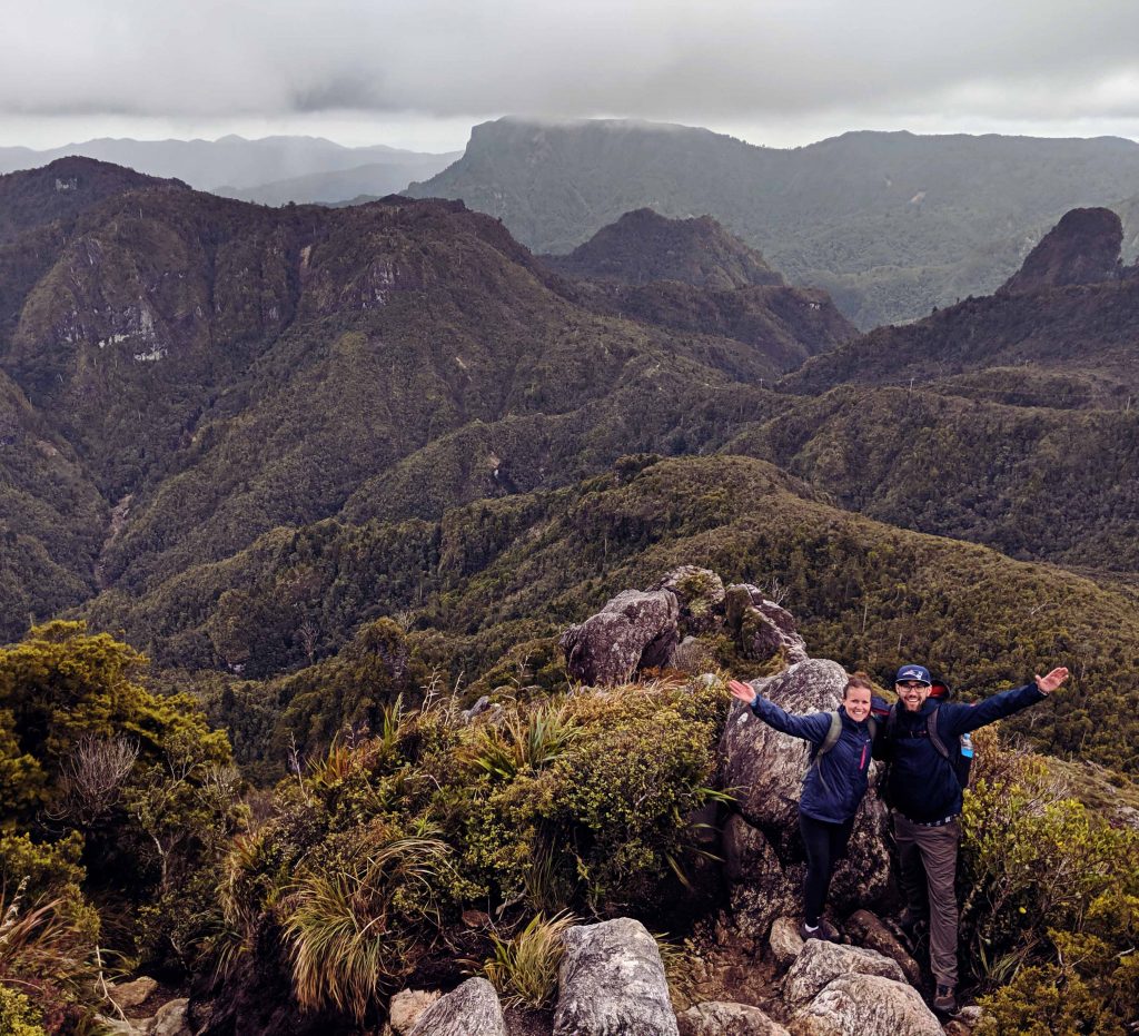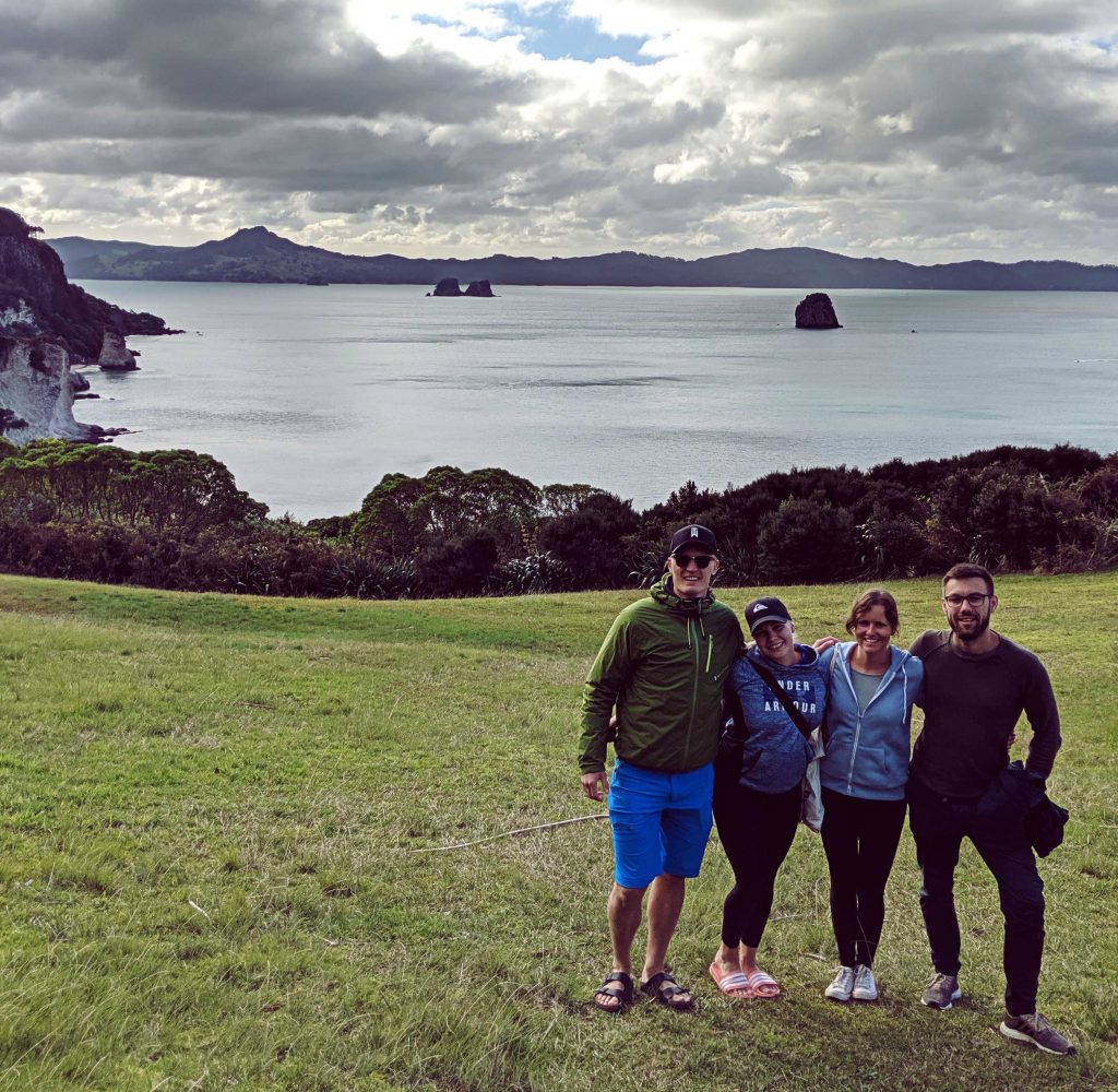 Die Wanderung führte uns über Hängebrücken, durch dichte Wälder, an steilen Felsen hoch bis auf den Gipfel eines Berges, der alle Anstrengung wert war! Die Aussicht vom Gipfel gab uns das erste Mal einen Einblick in die atemberaubende Natur Neuseelands und machte uns alle einen Moment sprachlos. Nach sieben Stunden wandern kamen wir schließlich wieder am Parkplatz des Nationalparks an und fühlten uns erstaunlicher Weise gar nicht so erschöpft wie vorher gedacht – was wahrscheinlich auch an der guten Gesellschaft lag. Wir beschlossen anschließend nicht nur den Abend zusammen ausklingen zu lassen, sondern auch die nächsten Tage gemeinsam weiterzureisen. Fun fact: Wie sich herausstellte, waren Kaisa und Jaako auch beide Lehrer – Manu war also von Pädagogen umringt 😀