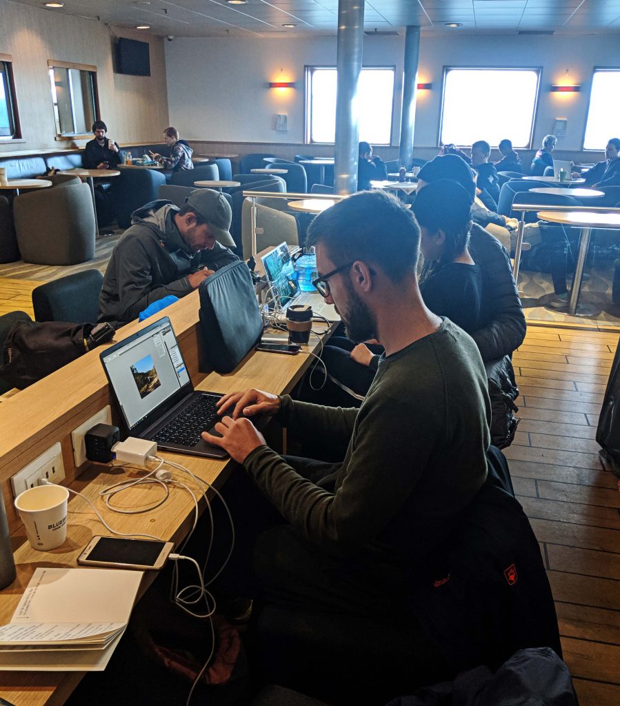 Den ersten Teil der Fährüberfahrt von Wellington nach Picton haben wir produktiv zu gebracht: