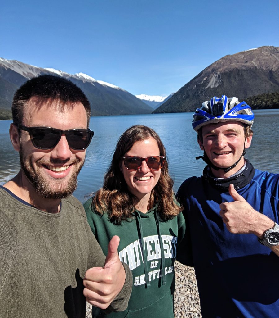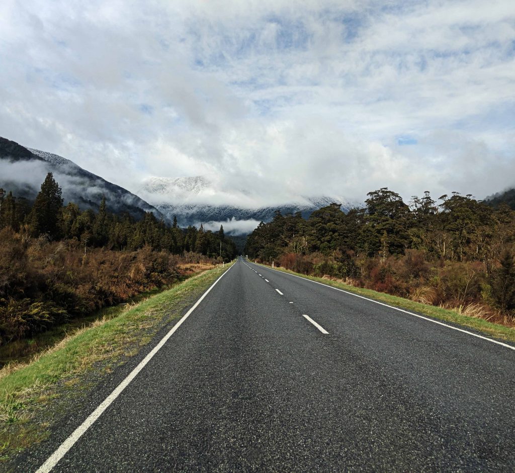 Irgendwo in der Mitte der Westküste hatten wir auf unserer Camping-App einen netten Campingplatz ausgemacht, den wir für die Nacht ansteuerten. Dort angekommen musste uns der nette Besitzer mitteilen, dass er nur Bargeld akzeptieren und kein EC-Gerät besitzen würde. Natürlich hatten wir genau zu diesem Zeitpunkt nicht mehr genügend Bargeld und die nächste Stadt mit Geldautomat war 25 km entfernt. Der Besitzer riet uns mit einem Augenzwinkern einfach zum nächsten DOC-Campingplatz zu fahren und dort kostenfrei zu nächtigen, weil in der Nebensaison keiner kontrollieren würde. Gesagt, getan steuerten wir diesen Platz an. Dort angekommen sahen wir einen jungen Mann, ohne Socken und mit Wäsche auf der Leine, an einem Unterstand stehen und frieren. Bei näherem Betrachten erkannten wir, dass es sich um Tommy, dem radelnden Neuseeländer von den Nelson Lakes handelte. Wir luden ihn direkt zu uns in den Van zum Tee und zum Aufwärmen ein. Wir plauderten wie alte Freunde und hatten viel Spaß bei einer Runde Kniffel. Ich weiß nicht wieso, aber ich muss heute noch lächeln, wenn ich uns drei dort in unserem Camper hocken sehe. Noch mehr freut es mich, dass wir entgegen unseres Plans handelten und unseren neuen Freund wieder getroffen haben. Es sind eben die kleinen Entscheidungen im Leben, die großen Einfluss auf uns haben. 😊