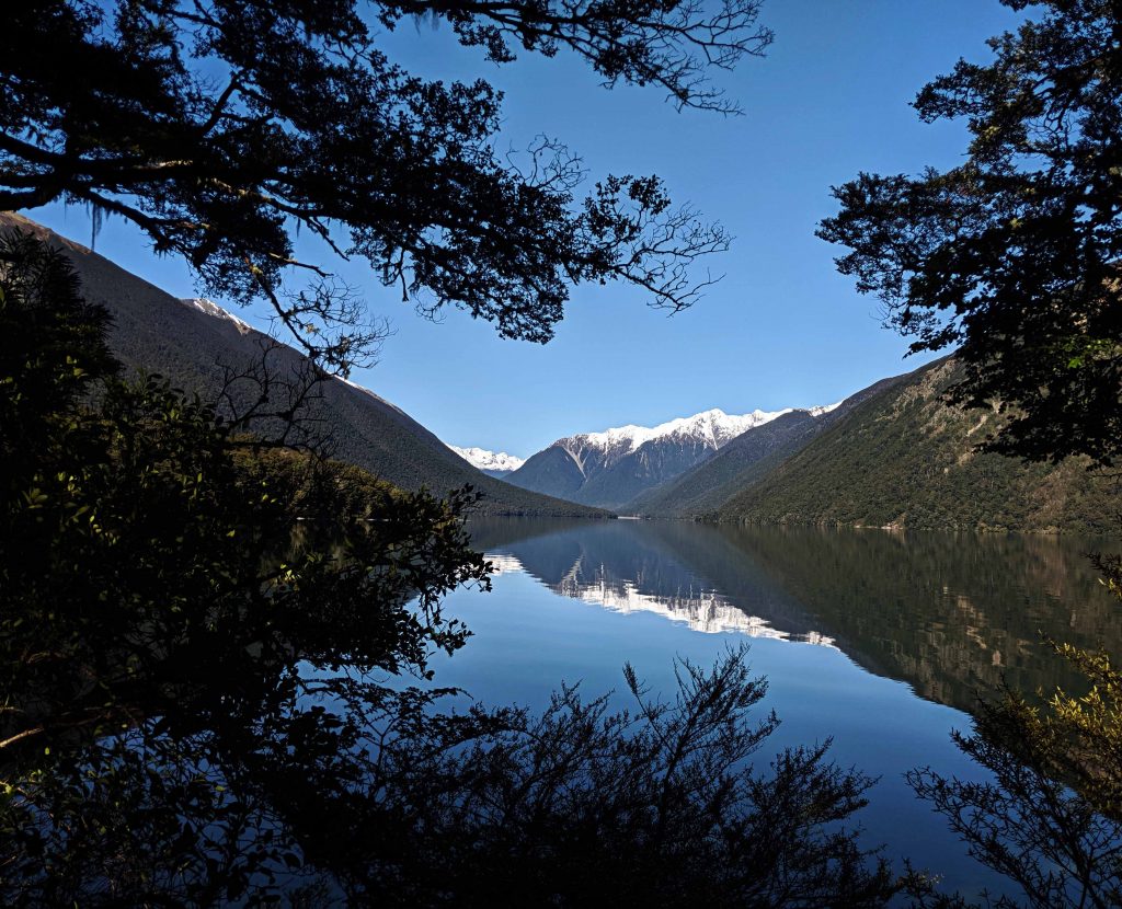 Viele Menschen haben uns empfohlen, den Abel Tasman Nationalpark zu bewandern. Schon bevor wir die Preise für Wassertaxi und Unterkünfte/Hütten herausfanden, kamen uns erste Zweifel. Die Wanderwege führen vorbei an einer mit Sicherheit beeindruckenden Küstenlandschaft. Wir hatten allerdings an der Ostküste Australiens schon genug davon und entschieden uns stattdessen für die eher unbekannte Region Nelson Lakes,um die (neugekauften) Wanderschuhe auszupacken.