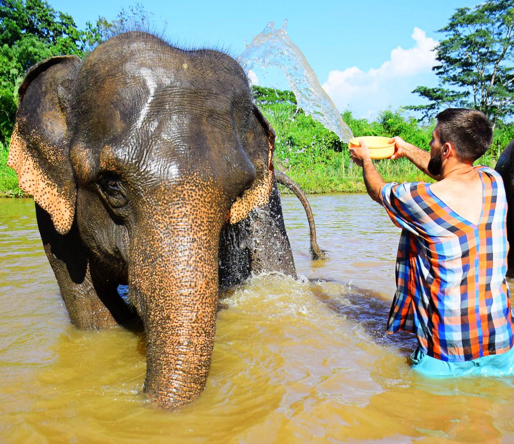 Die Zeit mit den Elefanten war eine wirklich intensive. Wir verstehen nun, warum viele Menschen die Begegnung mit den sanften Riesen als sehr eindrücklich beschreiben. Wir verbrachten am Anfang einige Zeit mit einem „frechen Mädchen“ – einem sehr verspielten jungen Elefanten, den alle anderen anwesenden Touristen mieden, weil er nicht so handzahm und etwas ungestümer war. Es fühlte sich danach so an, als ob dieser Elefant sich zu uns hingezogen fühlte und wir eine Verbindung zueinander aufgebaut hatten.