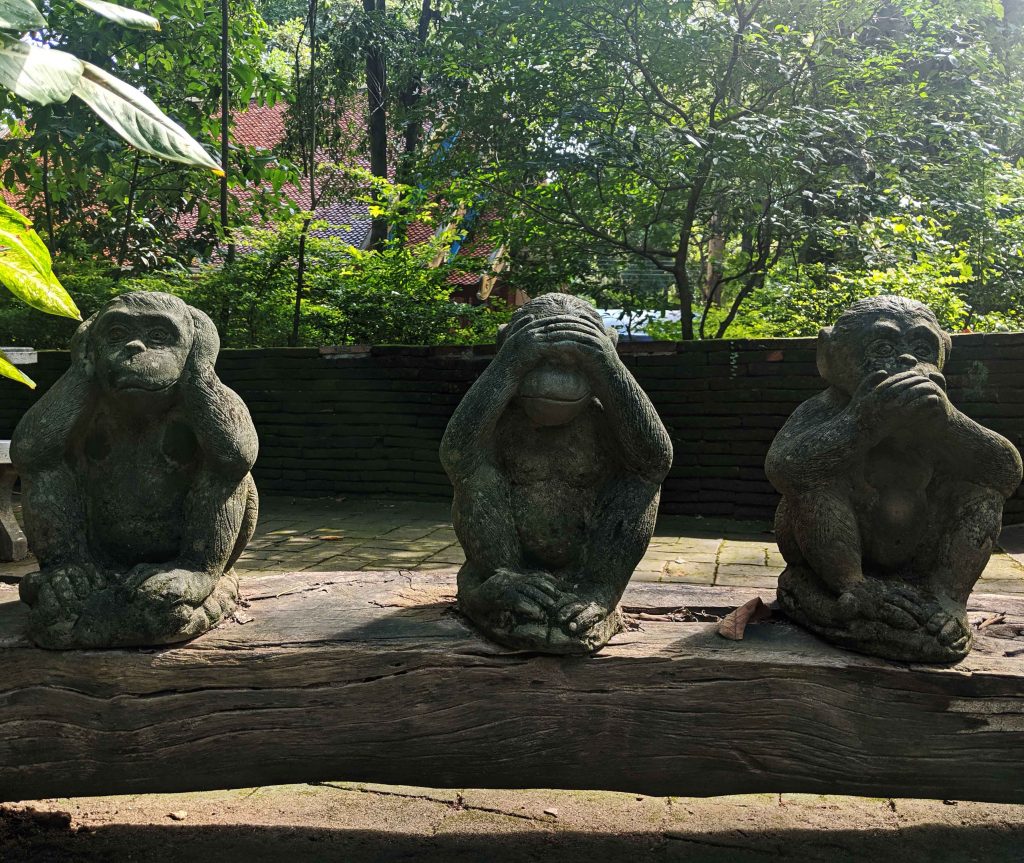 Nachdem wir, wie fast immer am Anfang, die Stadt zu Fuß erkundet hatten, mieteten wir einen Roller, bewegten uns etwas aus der Stadt heraus und ließen uns treiben. Wir bogen mal hier und mal dort ab – ohne wirklichen Plan. Nach einer Weile landeten wir bei einem Tempel, der anders war als die vielen goldenen Tempel der Stadt. In einer kleinen Idylle gelegen, hatte der Wat Umong seinen eigenen Charme.