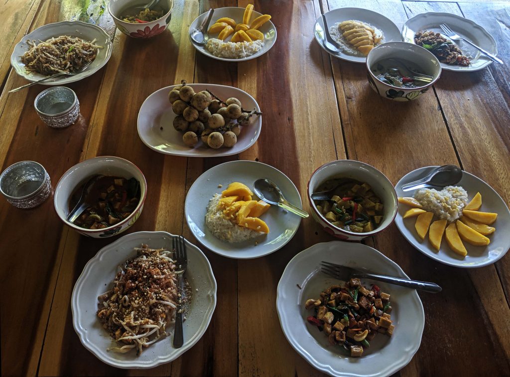 Des Weiteren besuchten wir in Chiang Mai mal wieder einen Kochkurs, den wir mit einem weiteren Deutschen und seiner israelischen Freundin durchführten. Der Deutsche hatte den gleichen Kochkurs schon einmal vor sieben Jahren gemacht und war absolut begeistert. Auf Sammy’s Organic Farm außerhalb der Stadt kochten wir also Thai Curry, Suppen und Mango mit Sticky Rice. Wir erlebten die schönste Toilette Thailands und relaxten nach der Arbeit und dem Essen in Hängematten.