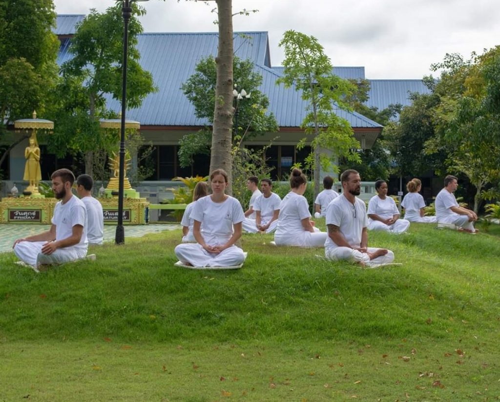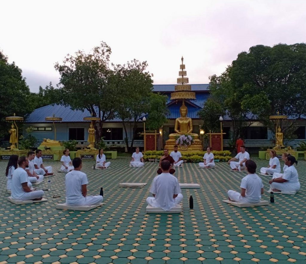 Mit diesem Muskelkater ging es dann zu einer ganz neuen Erfahrung für uns: Einem viertägigen, stillen Meditation Retreat. Wir waren anfangs nervös, da wir keine Ahnung hatten, was uns erwarten würde. Der Tagesablauf sah wie folgt aus: Um fünf Uhr wurde der erste Gong zum Aufstehen geschlagen. Die erste Meditationssitzung wurde dann von 05:30 Uhr bis 07:00 abgehalten. Anschließend Frühstück und etwas Freizeit. Dann wieder eine zweistündige Meditationseinheit, bevor es zum Mittagessen ging. Mit fünf Meditationssitzungen pro Tag haben wir also jeden Tag ca. sechs Stunden im Sitzen, Liegen oder Gehen meditiert. Warum macht man das Ganze? Gute Frage! Im Ernst: Es geht darum bei sich und ausschließlich bei sich zu sein. Es wird in vielen Bereichen unseres Lebens immer schwieriger sich auf sich zu konzentrieren und nicht den Reizen der Außenwelt nachzugehen. Während der Meditation versucht man sich nur auf sein Ein- und Ausatmen zu konzentrieren. Wer das schon mal versucht hat, wird feststellen, dass nach spätestens fünf oder sechs Atemzügen Gedanken auftauchen. Oder das Bein juckt. Oder man ein störendes Geräusch wahrnimmt. Und Schwups ist die Konzentration auf den Atem dahin. Während der Meditation wird versucht sich nicht von solchen Dingen ablenken zu lassen, sie aber dennoch wahrzunehmen und trotzdem nicht weiter zu verfolgen. Man bezeichnet diese Art der Meditation als Vipassana oder auch Achtsamkeitstraining.