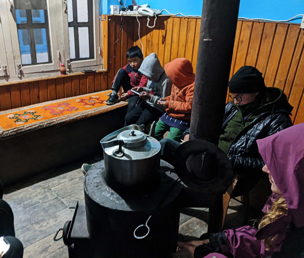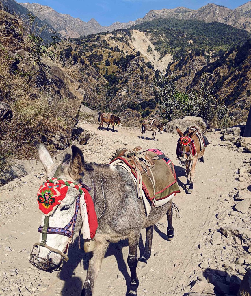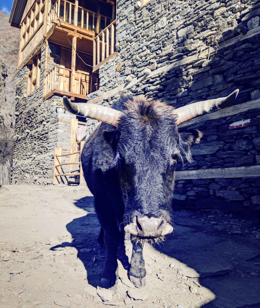 Wir zogen also von nun an zu fünft immer den gigantisch anmutenden Bergen entgegen. Vorbei an Yaks, Eseln und bunten Häuschen. Einen Schritt nach dem anderen. Ab und zu eine Pause um die Landschaft zu genießen. Wir unterhielten uns in der Truppe auf Anhieb wirklich gut und hatten viel Spaß miteinander.