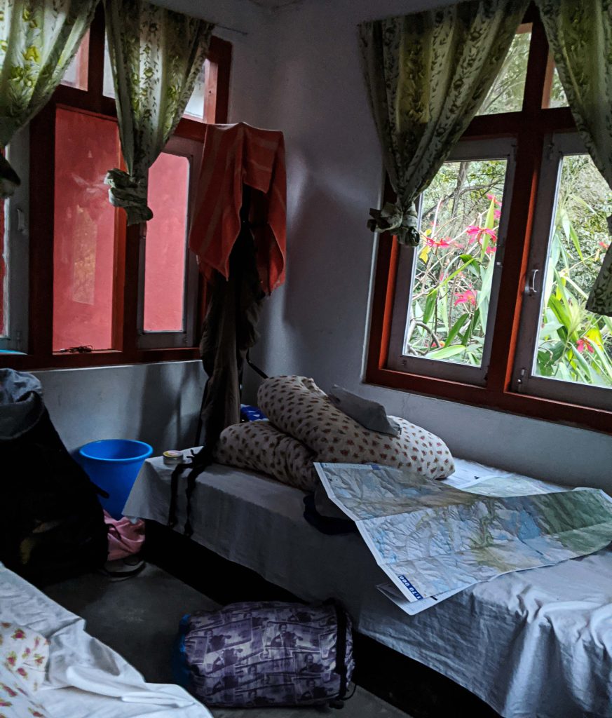Meine zweite Nacht verbrachte ich wieder in einem kleinen süßen Dorf etwas hinter Jagat auf mittlerweile 1188m. Knapp 400 Höhenmeter an einem Tag – wenn das so weiter gehen würde, wäre ich ja schon bald da.
