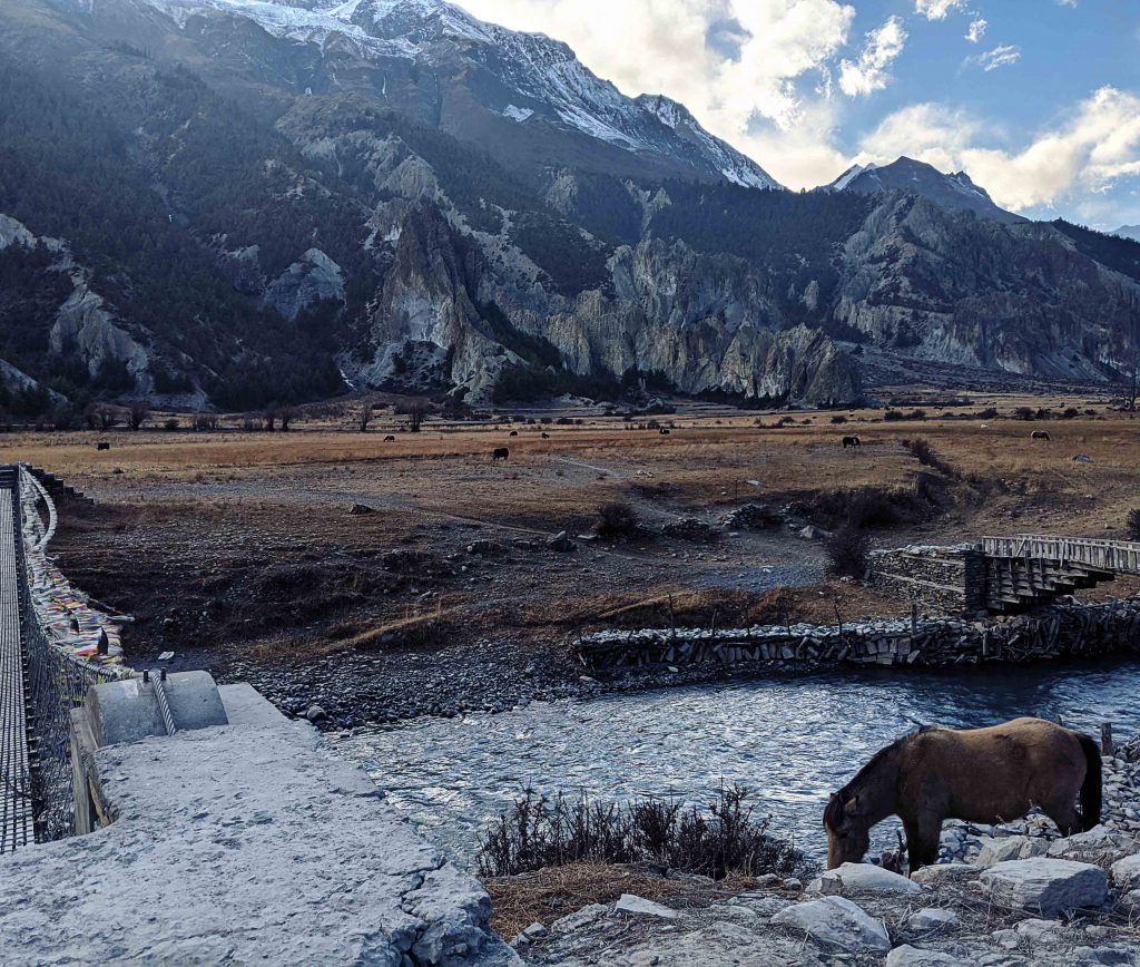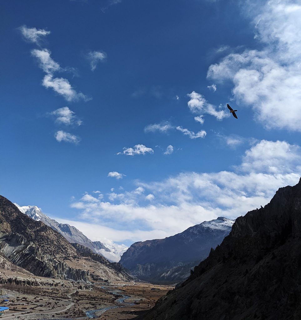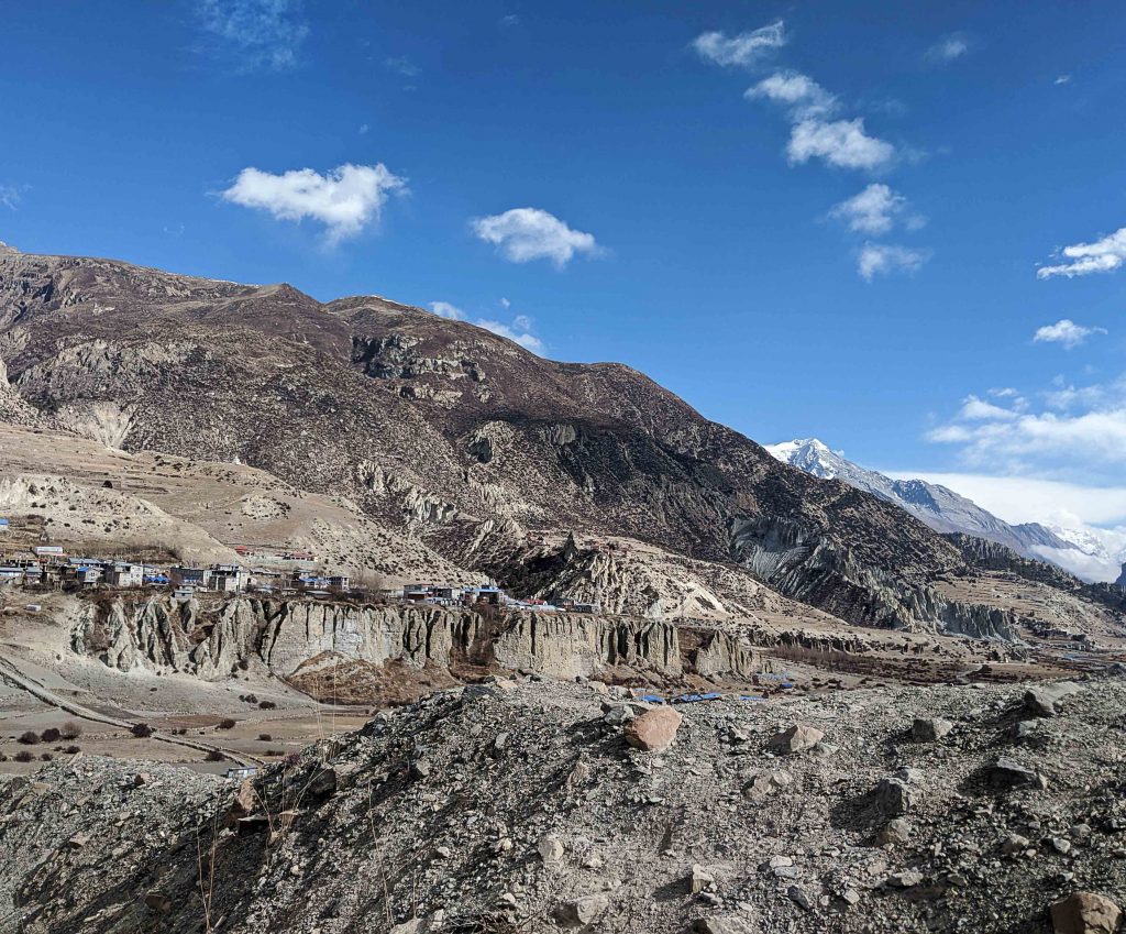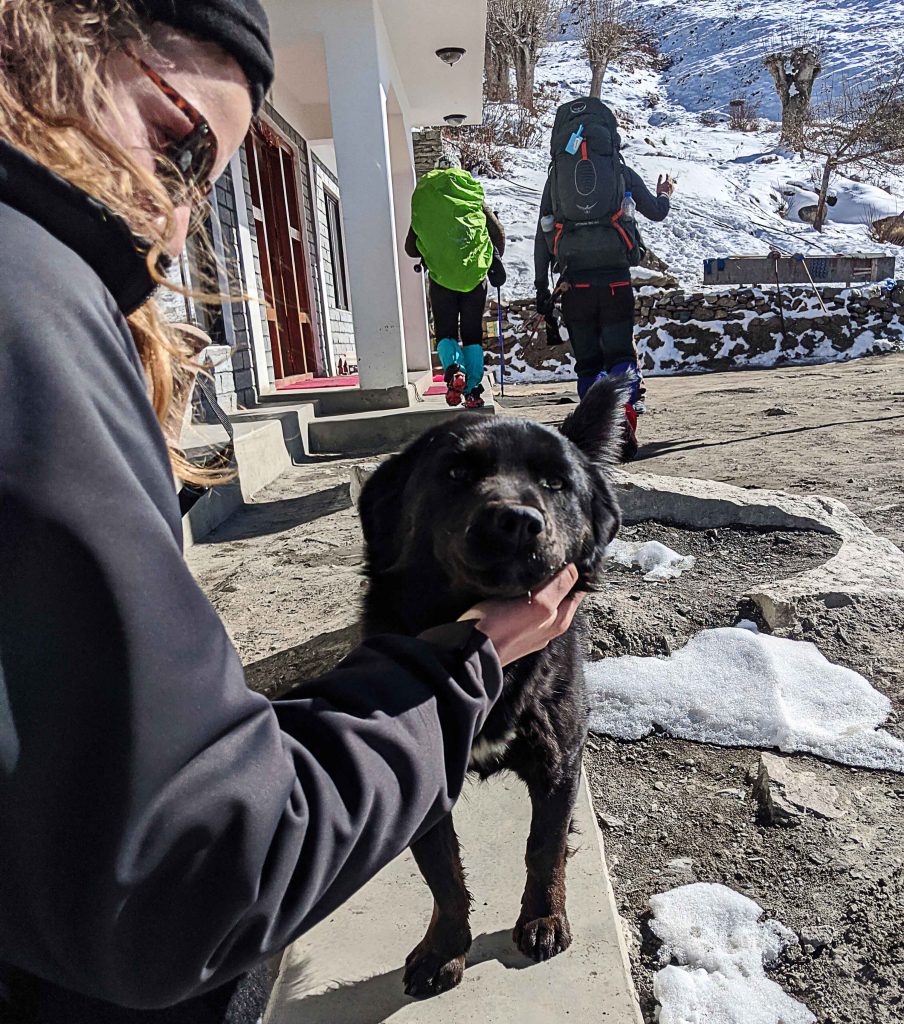 Während unseres Pausentages in Manang ließen wir es ruhig angehen. Wir wuschen Wäsche und kauften noch ein paar fehlende Equipmentgegenstände wie Wanderstöcke und dünne Handschuhe zum Darunterziehen. Wir tranken den ersten richtigen Kaffee seit Tagen, der nicht aus Instantpulver bestand und trafen auf einen Hund, der uns die Tage zuvor schon lange begleitet hatte. Um den Körper weiter an die Höhe zu gewöhnen und die Akklimatisierung zu unterstützen, machten wir ebenfalls einen kleinen Ausflug auf einen nah gelegenen Hügel etwa 200 Höhenmeter hoch und wieder zurück.