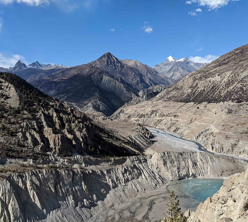 Die nächsten Tage waren deutlich weniger ereignisreich und aufregend. Wir machten eine weitere Tagesetappe nach Jomsom hinunter auf 2700m. Wir hatten den Luxus, unsere Rucksäcke in einem Jeep transportieren zu lassen, weil einige von uns Erfrierungen erlitten hatten und nicht weiterlaufen konnten und einen Jeep nach Jomsom nahmen.