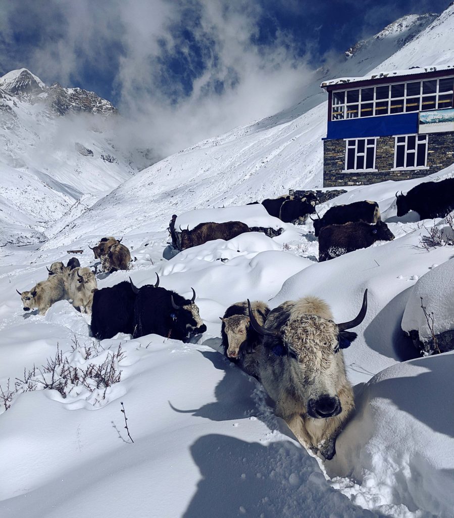 Wir trafen recht früh in Yak Kharka auf circa 4018m ein. Den restlichen Abend/Tag verbrachten wir mit Kartenspielen und Geschichten erzählen mit weiteren Wanderern, welche sich schon in der Hütte befanden: Zwei Deutsche, fünf Spanier, ein weiterer Schotte und zwei Amerikaner. Es herrschte eine ziemlich entspannte, locker lustige Stimmung die zum Verweilen einlud.