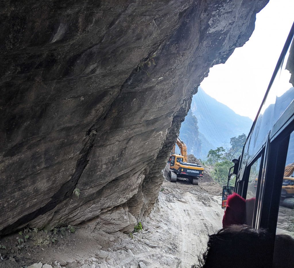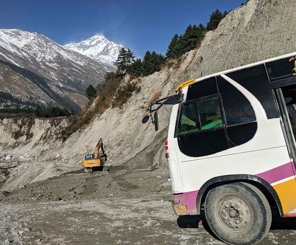 Auf der Busfahrt durften wir nochmal das ganz normale Leben in Nepal kennen lernen. Mehr wackelnd und hüpfend ging es immer nah am Abgrund auf einer „Straße“ hinunter. Zwischendurch mussten wir zwei Mal für je circa eineinhalb Stunden anhalten. Ein Erdrutsch hatte die Straße unpassierbar gemacht und die Bagger waren schon am Werk. Die Nepali warteten seelenruhig – für sie absolut nichts besonderes. In Tatopani angekommen relaxten wir in den heißen Quellen bevor es am nächsten Tag wieder zurück in die Zivilisation nach Pokhara ging.