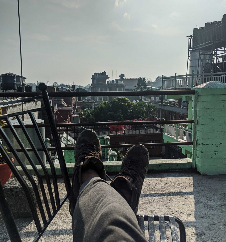 In Pokhara verbrachte ich noch drei Tage mit den Australiern, Marc und Elisa. Wir gingen klettern und kauften ein paar Souvenirs. Ich lag an einem Tag in einer Hängematte auf dem Dach meines Hostels, als ich von hinten nur „Hey man!“ hörte. Es war Alberto! Er hatte es geschafft. Ich freute mich total ihn wieder zusehen und wir konnten sogar noch an meinem letzten Abend in Pokhara ein Bier zusammen trinken.